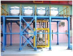 To solve the problem of both dosing accuracy and dust generation, Matcon proposed a "FLEXI-BATCH" Formulation system. Ingredients are initially transferred from bags and drums into Matcon IBCs. These IBCs are then positioned on the Formulation system where the ingredients can be dosed into a receiving container below to the required recipe and accuracy of /- 100g.